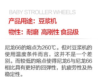 PA66的粘性较低,因此流动性很好(但不如PA6)。这个性质可以用来加工很薄的元件。它的粘度对温度变化很敏感。PA66的收缩率在1%~2%之间,加入玻璃纤维添加剂可以将收缩率降低到0.2%~1% 。收缩率在流程方向和与流程方向相垂直方向上的相异是较大的。PA66对许多溶剂具有抗溶性,但对酸和其它一些氯化剂的抵抗力较弱.